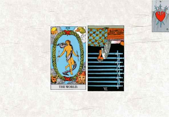 今月の課題が【Ⅹ 運命の輪】、今日の鍵がワンド8正位置。