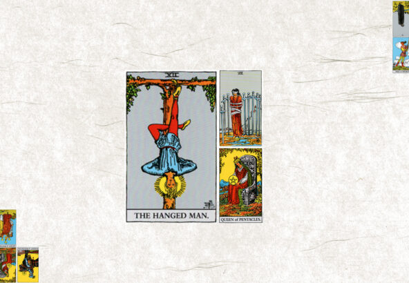 ソード3の人生を送ってきた老人が隠者に出会った。老人が隠者に「人生の意味を教えてください」と尋ねると隠者はタロットを持ち出した。