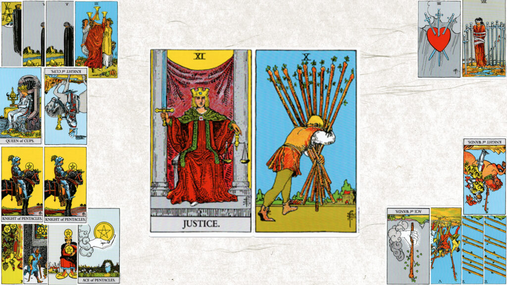 今月のテーマは【ⅩⅠ 正義】。正しく生きるための鍵をくださいと一枚引いたら、ワンド10正位置