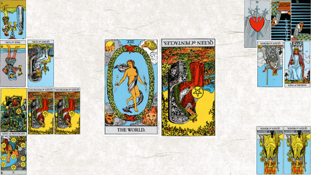 今月のテーマは【ⅩⅩⅠ 世界】。鍵をくださいと一枚引いたら、ペンタクルクィーン逆位置