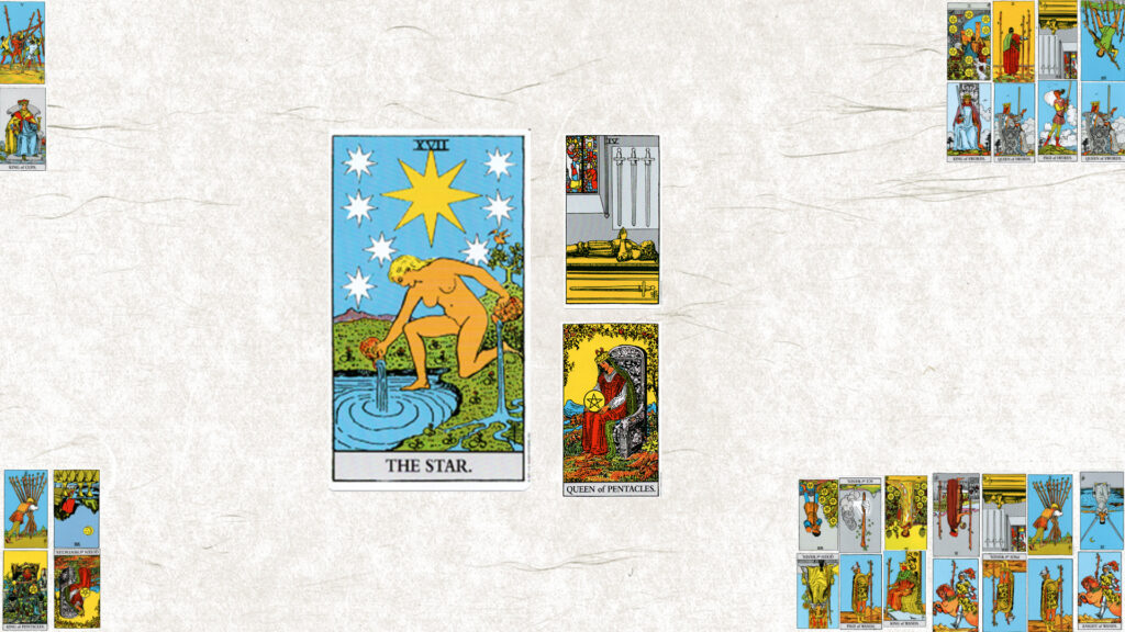 今月のテーマは【ⅩⅦ 星】。今日の鍵をくださいと二枚引いたら、ソード4とペンタクルクィーン正位置