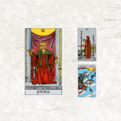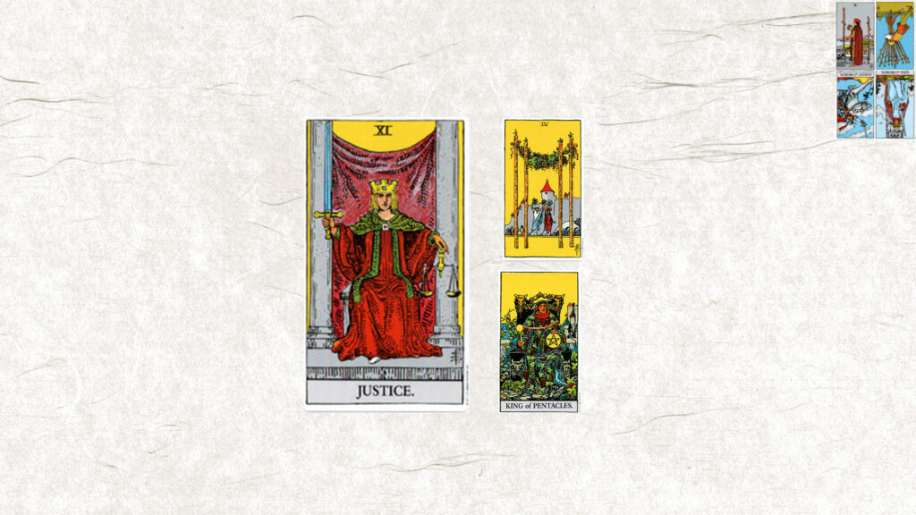 今月のテーマは【ⅩⅠ 正義】。今日の鍵をくださいと二枚引いたら、ワンド4正位置とペンタクルキング正位置