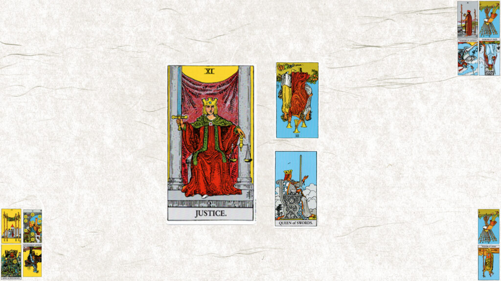 今月のテーマは【ⅩⅠ 正義】。今日の鍵をくださいと二枚引いたら、カップ3逆位置とSクィーン正位置