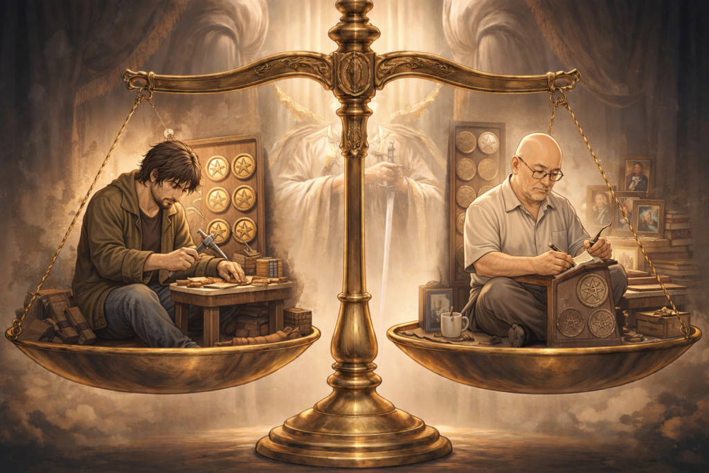 天秤の片方の皿に【おれのペンタクル8】をのせる、もう片方の皿に何が置かれるだろう。