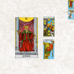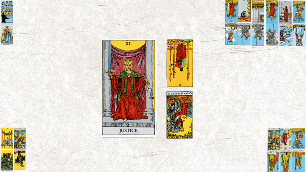 今月のテーマは【ⅩⅠ 正義】。今日の鍵をくださいと二枚引いたら、ワンド3逆位置とペンタクルクィーン逆位置