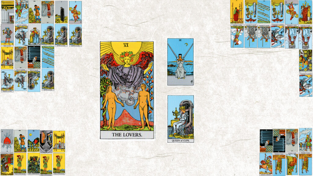 今月のテーマは【Ⅵ 恋人たち】。今日の鍵をくださいと二枚引いたら、ソード2正位置とカップクィーン正位置
