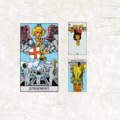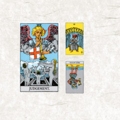 今月のテーマは【ⅩⅩ 審判】。今日の鍵をくださいと二枚引いたら、ワンド3逆位置とカップキング正位置