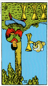 似たイメージで、同じ小アルカナ4の一枚、カップ4逆位置があります。