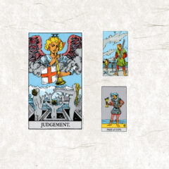 今月のテーマは【ⅩⅩ 審判】。今日の鍵をくださいと二枚引いたら、ソード4逆位置とソードペイジ正位置