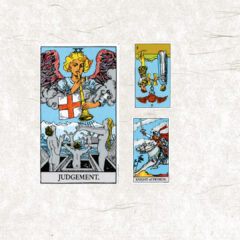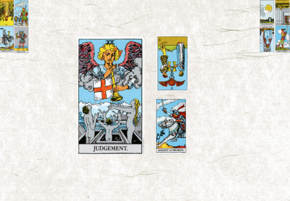 今月のテーマは【ⅩⅩ 審判】。今日の鍵をくださいと二枚引いたら、ペンタクルエース正位置とソードキング逆位置