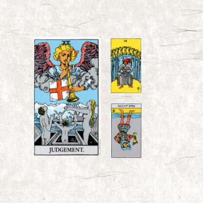 今月のテーマは【ⅩⅩ 審判】。今日の鍵をくださいと二枚引いたら、カップ2逆位置とソードナイト正位置