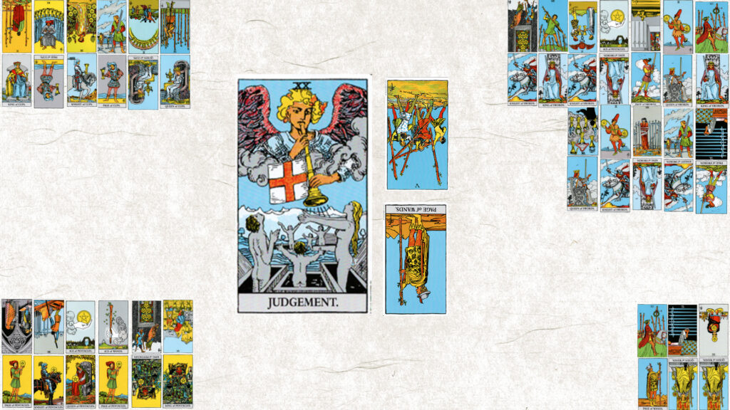 今月のテーマは【ⅩⅩ 審判】。今日の鍵をくださいと二枚引いたら、ワンド5逆位置とワンドペイジ逆位置